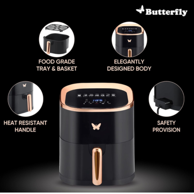 Butterfly Magnum Digital Air Fryer 4.5L, 1200W | 360° High Speed Air Circulation Technology | Low Fat Cooking