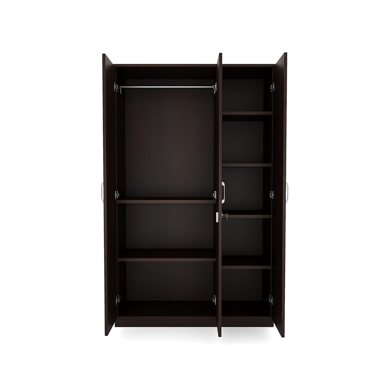 Nilkamal Willy Engineered Wood 3 Door Wardrobe with 1 Hanging Rod and 6 Shelves | 1 Year Warranty | Bedroom Wardrobe (Color - New Wenge, Delivery Condition - Knock Down)